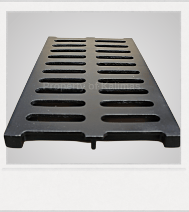 Penutup saluran air (grill) dari besi cor yang berfungsi sebagai penyaring sampah dan mencegah penyumbatan pada drainase. Biasanya dipasang di pinggir jalan, trotoar, atau area parkir.