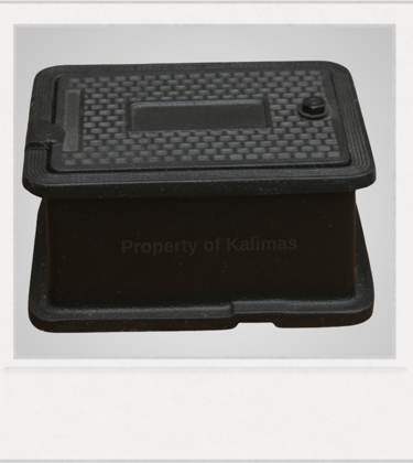 Penutup lubang kontrol (manhole) berbentuk persegi, sangat cocok untuk area yang membutuhkan keselarasan dengan paving block atau trotoar, seperti di jalanan atau area industri.